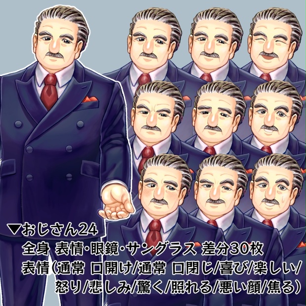 4996日目。 draw 2024.11.10 この記事は約1分で読めます。 【立ち絵】おじさん24(差分30枚) - オトガル - BOOTHゲームや動画、TRPGのオンラインセッションなどに使用できる立ち絵素材です。 ビジネスマンで社長な雰囲気のふくよかなおじさんです。 眼鏡、サングラス差分があります。 noteでも販売予定です。 ▼内容物 ・全身 透過済みPNG(825×13... おじさんをリリースしました!! そして次の立ち絵。鉄は熱いうちに打て。 衣装の方はセットアップが大体終わったので動作確認に入るところです。 WEB拍手 0関連記事: 目次 関連記事:2592日目。2176&77日目。3898日目。817日目。 2592日目。2176&77日目。3898日目。817日目。